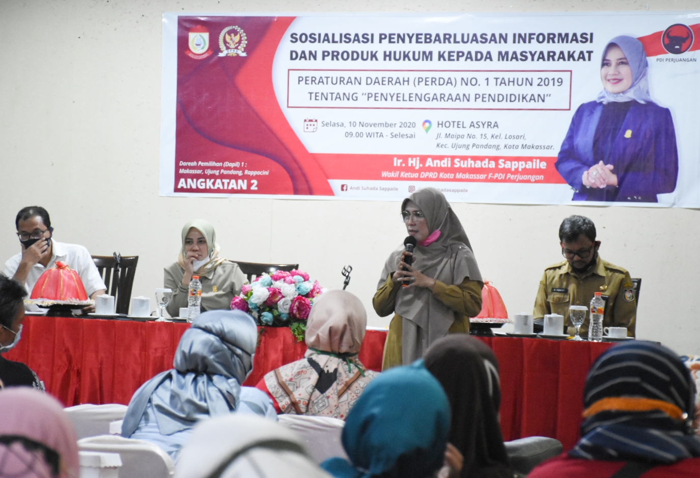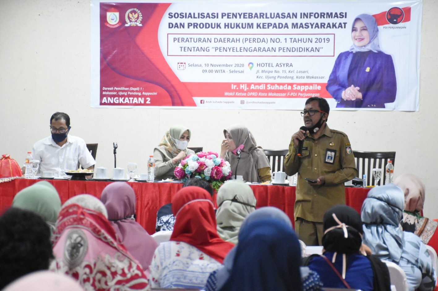 MAKASSAR, DATAKITA.CO – Wakil Ketua DPRD Kota Makassar, Andi Suhada Sappaile menggelar kegiatan sosialisasi peraturan daerah (Perda) nomor 1 tahun 2019 tentang penyelenggaraan pendidikan di Hotel Asyra, Selasa (10/11/2020).