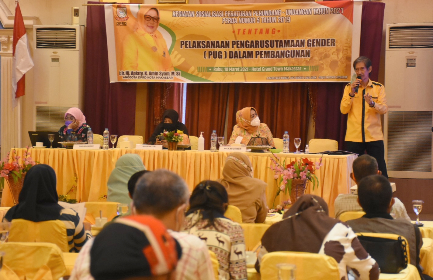 MAKASSAR, DATAKITA.CO – Anggota DPRD Kota Makassar, Apiaty K Amin Syam menggelar kegiatan sosialisasi Perda nomor 5 tahun 2019 tentang Pengarusutamaan Gender (PUG) dalam pembangunan di Hotel Grand Town, Jalan Pengayoman, Rabu (10/3/2021).
