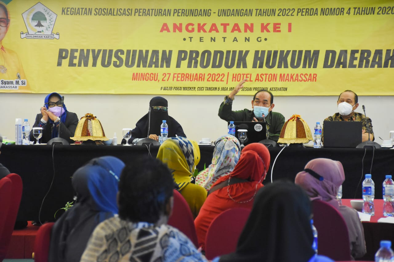 MAKASSAR, DATAKITA.CO – Anggota DPRD Kota Makassar, Apiaty K. Amin Syam kembali menemui konstituen. Kali ini, dengan menggelar sosialisasi peraturan daerah (Perda) nomor 4 tahun 2020 tentang Penyusunan Produk Hukum Daerah, di Hotel Aston, Minggu (27/2/2022).