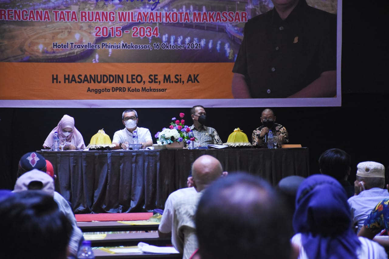 MAKASSAR, DATAKITA.CO – Anggota DPRD Kota Makassar, Hasanuddin Leo menggelar sosialisasi peraturan daerah (perda) nomor 4 tahun 2015 tentang Rencana Tata Ruang Wilayah (RTRW) di Hotel Phinisi Travelers, Jalan Lamadukelleng Buntu, Sabtu (16/10/2021).