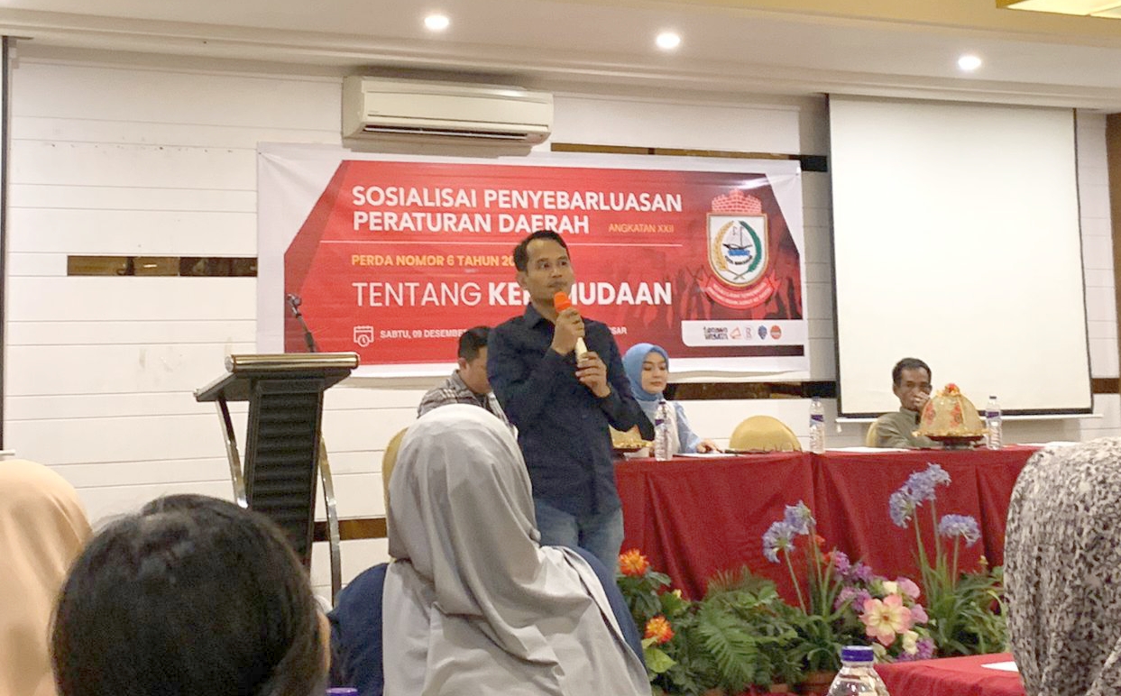 Hal demikian disampaikan Budi Hastuti dalam Sosialisasi penyebarluasan Perda nomor 6 tahun 2019 tentang Kepemudaan, di Hotel Favor, Jl Lasinrang, Sabtu (9/12/2023).