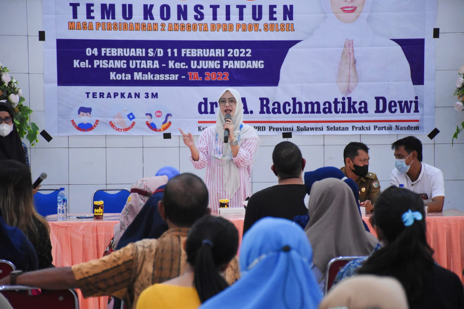 MAKASSAR, DATAKITA.CO – Anggota DPRD Provinsi Sulawesi Selatan, Andi Rachmatika Dewi melanjutkan kegiatan Reses masa persidangan 2 tahun anggaran 2022, di Jalan Sungai Poso, Kelurahan Pisang Utara, Kecamatan Ujung Pandang, Makassar, Senin (7/2/2022).