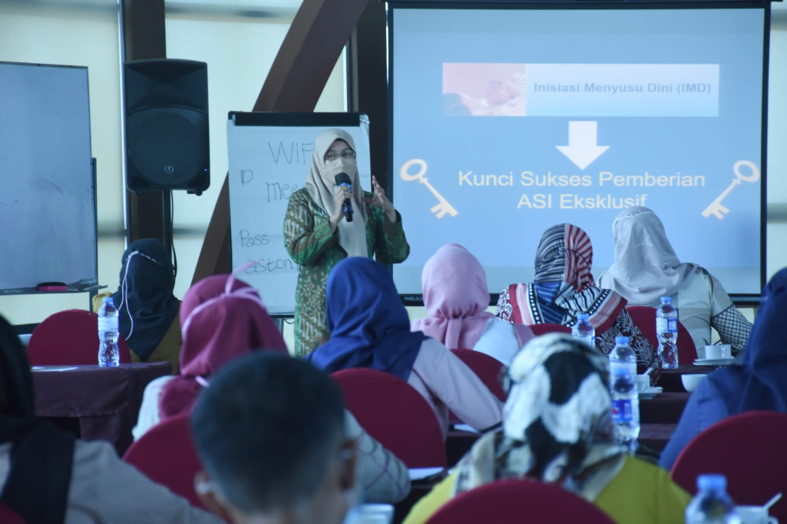 Pada kesempatan ini, Fatma Wahyuddin mensosialisasikan manfaat Air Susu Ibu (ASI) secara eksklusif ke peserta. Bahkan, dirinya meminta ke peserta agar informasi ini bisa disebarluaskan ke lingkungan masing-masing.