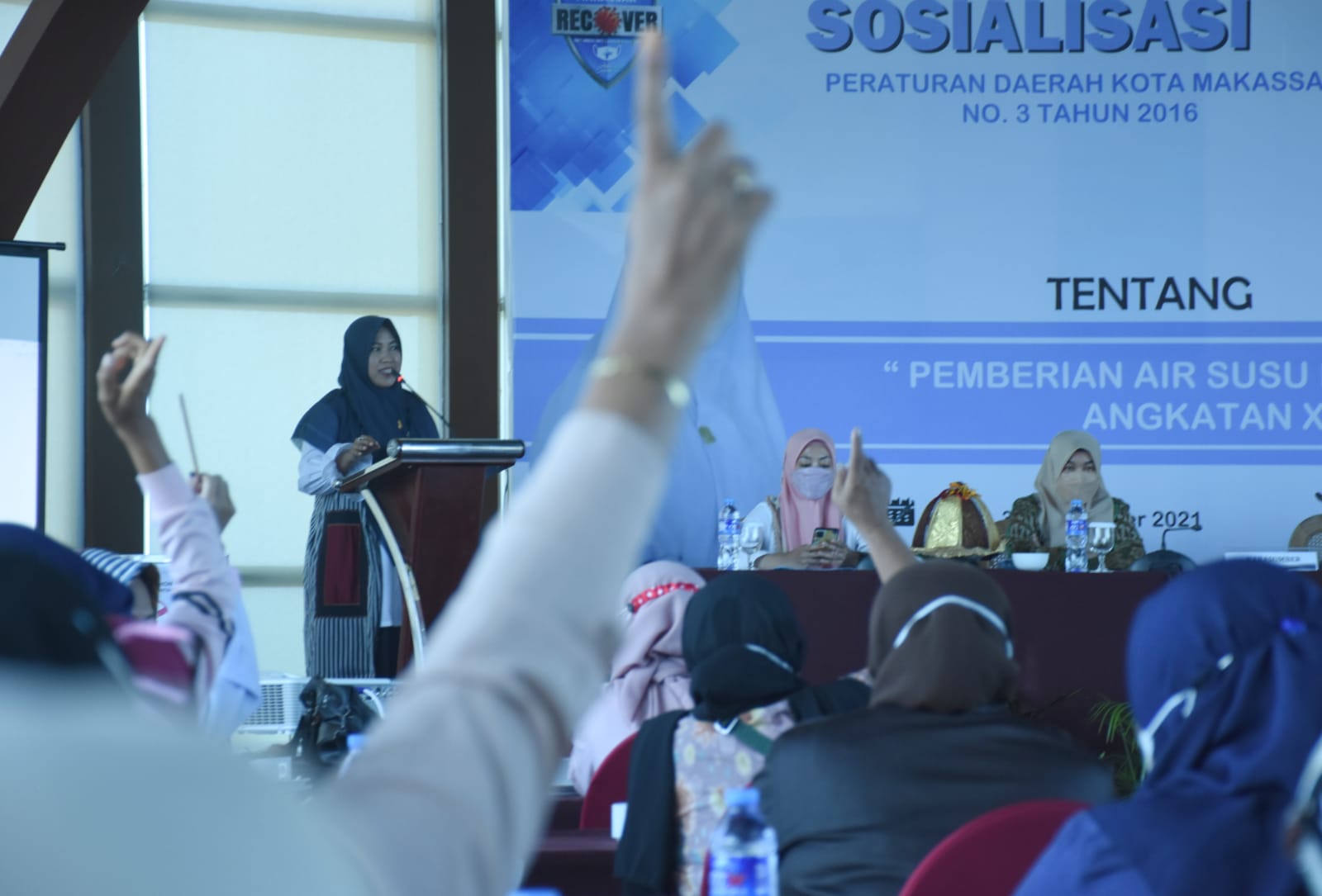 MAKASSAR, DATAKITA.CO – Anggota DPRD Kota Makassar, Fatma Wahyuddin menggelar sosialisasi peraturan daerah (perda) nomor 3 tahun 2016 tentang Pemberian ASI Eksklusif, di Hotel Aston, Kamis (30/9/2021).