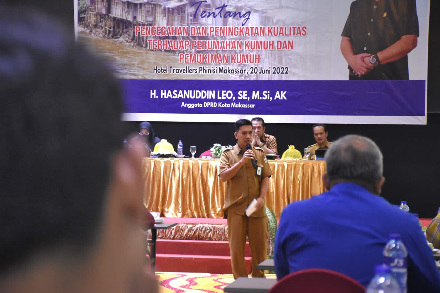Hal itu dia sampaikan saat menggelar sosialisasi peraturan daerah (Perda) nomor 3 tahun 2020 tentang Pencegahan dan Peningkatan Kualitas Terhadap Perumahan Kumuh dan Pemukiman Kumuh, di Hotel Travellers, Senin (20/6/2022).