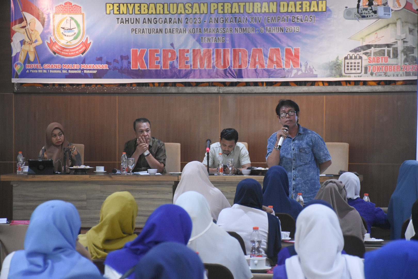Hal itu dikatakan Hasanuddin Leo saat melaksanakan Sosialisasi penyebarluasan Perda 6 tahun 2019 tentang Kepemudaan, di Hotel Grand Maleo Makassar, Sabtu (7/10/2023).