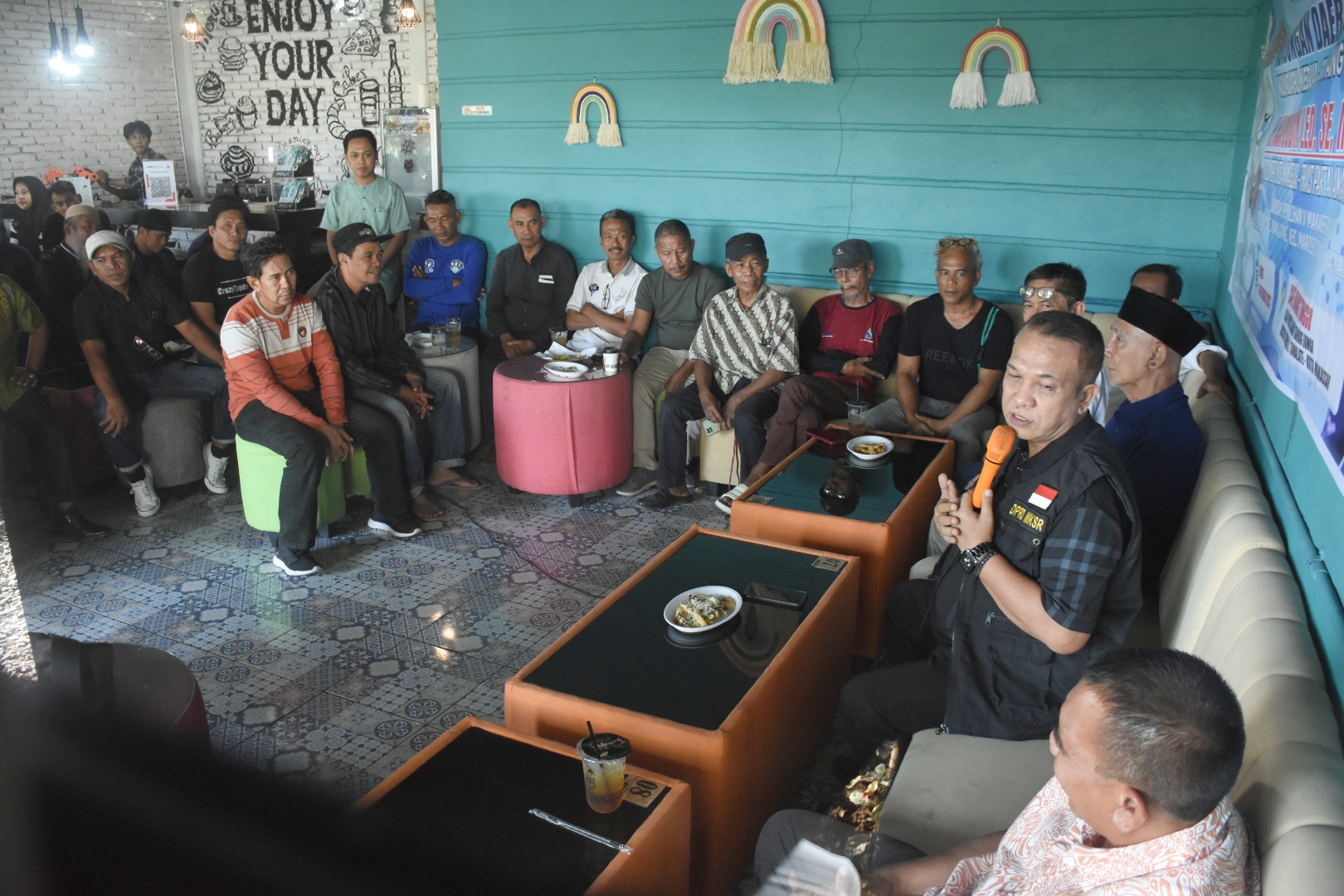 Setelah turun meninjau daerah pemilihan, Hasanuddin Leo kemudian melakukan pertemuan dengan warga untuk berdialog di Cafe Ruang Tunggu, Jl Danau Tanjung Bunga, Kelurahan Maccini Sombala, Jumat (13/10/2023).