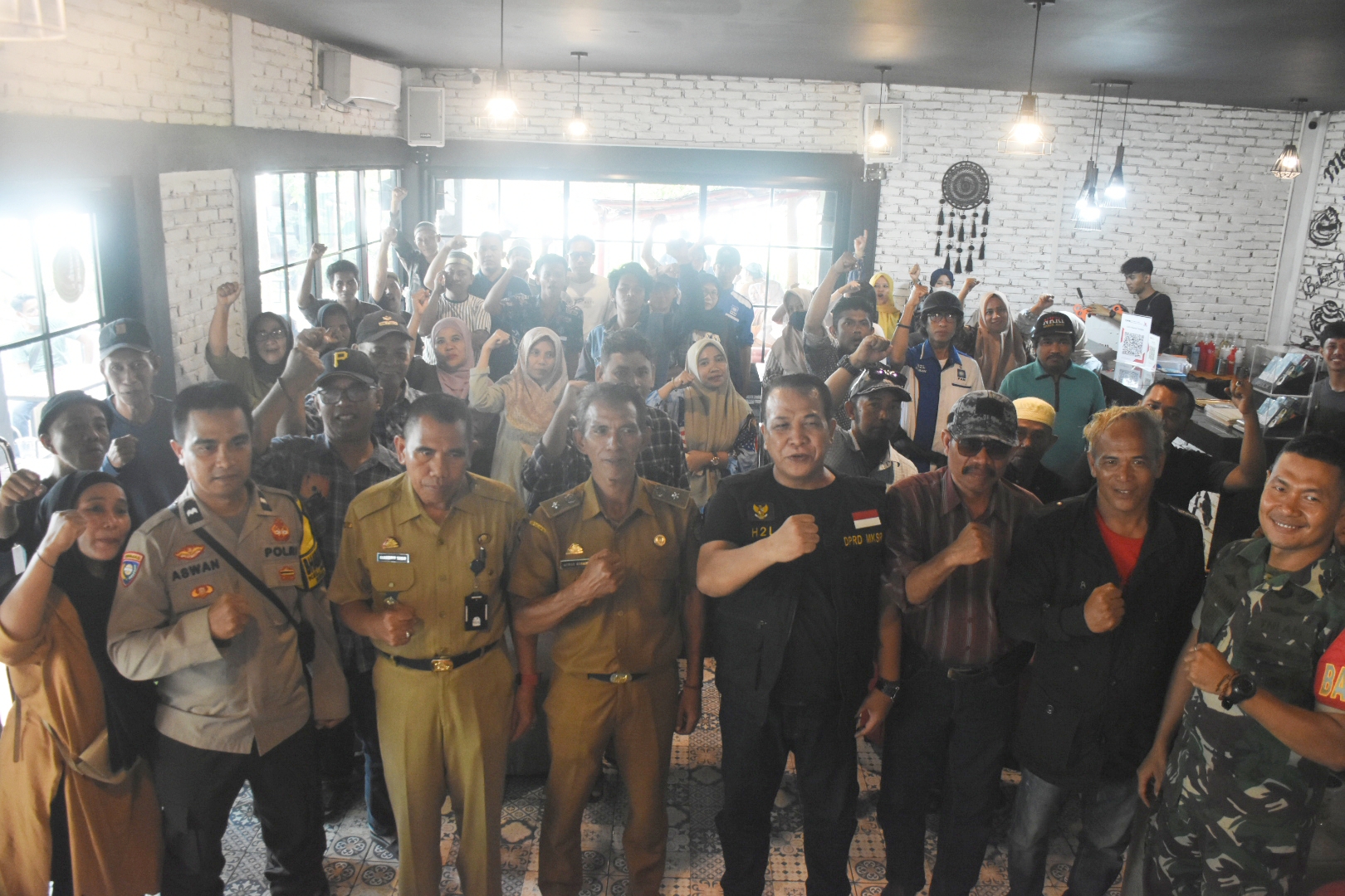 Setelah turun meninjau daerah pemilihan, Hasanuddin Leo bersama unsur Tripilar kemudian melakukan pertemuan dengan warga untuk berdialog di Cafe Ruang Tunggu, Jl Danau Tanjung Bunga.
