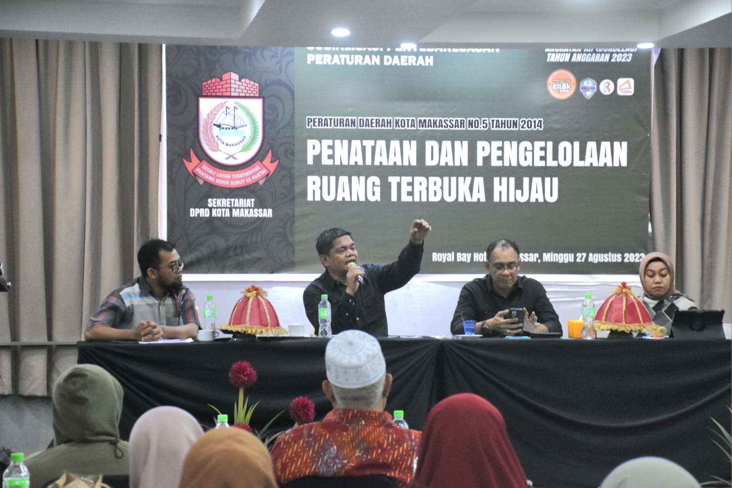 MAKASSAR, DATAKITA.CO – Anggota DPRD Kota Makassar, Fasruddin Rusli kembali menggelar sosialisasi penyebarluasan Perda nomor 5 tahun 2014 tentang Penataan dan Pengelolaan Ruang Terbuka Hijau, di Hotel Royal Bay Makassar, Minggu (27/8/2023).