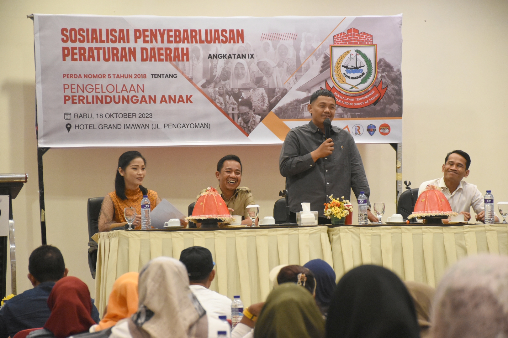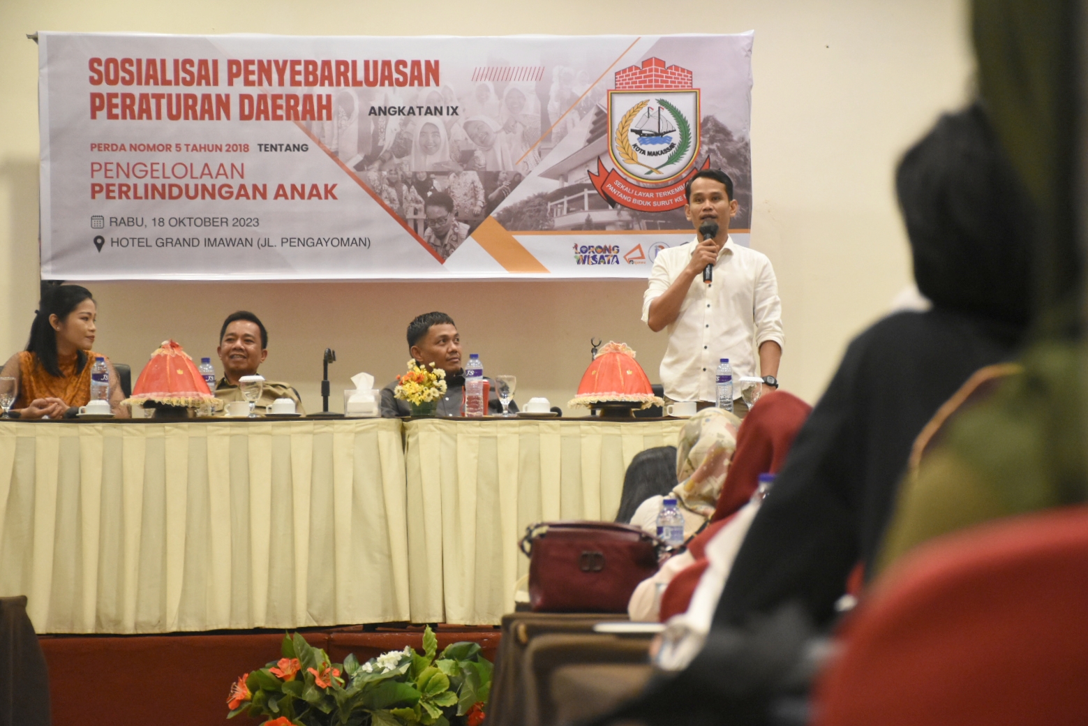 Pertemuan tersebut membahas sosialisasi peraturan daerah (Perda) nomor 5 tahun 2018 tentang Perlindungan Anak, di Hotel Grand Imawan, Rabu (18/10/2023).