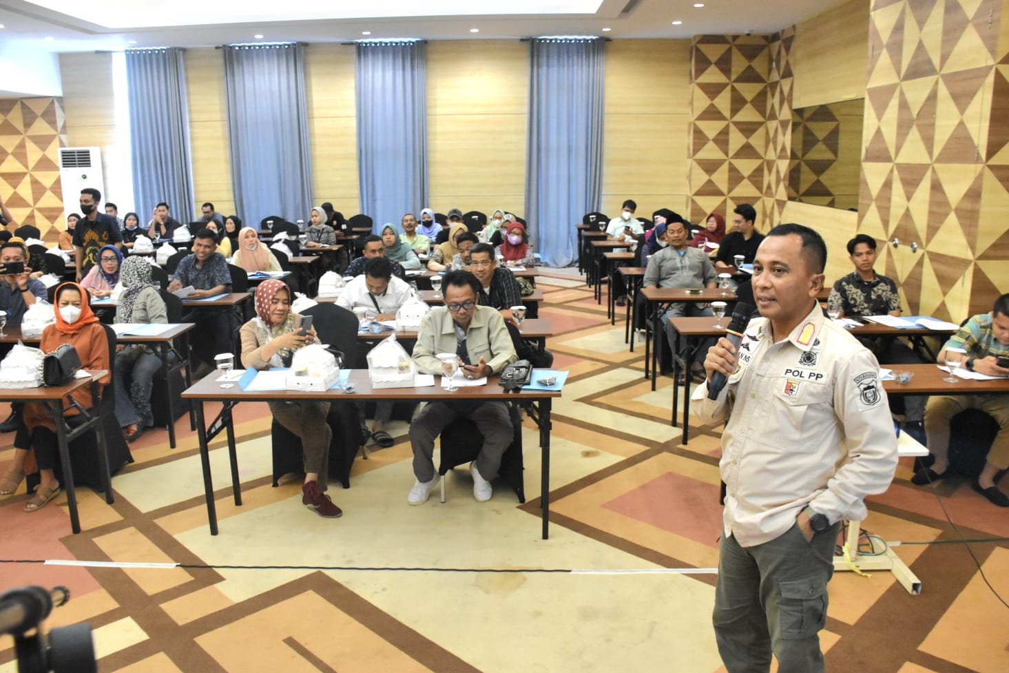 Melalui kesempatan itu, hadir sebagai narasumber dari tokoh masyarakat Irham Amil menyampaikan penyelenggaraan ketertiban umum dan ketenteraman masyarakat adalah upaya dan kegiatan yang diselenggarakan oleh aparat penegak seperti Satpol PP.