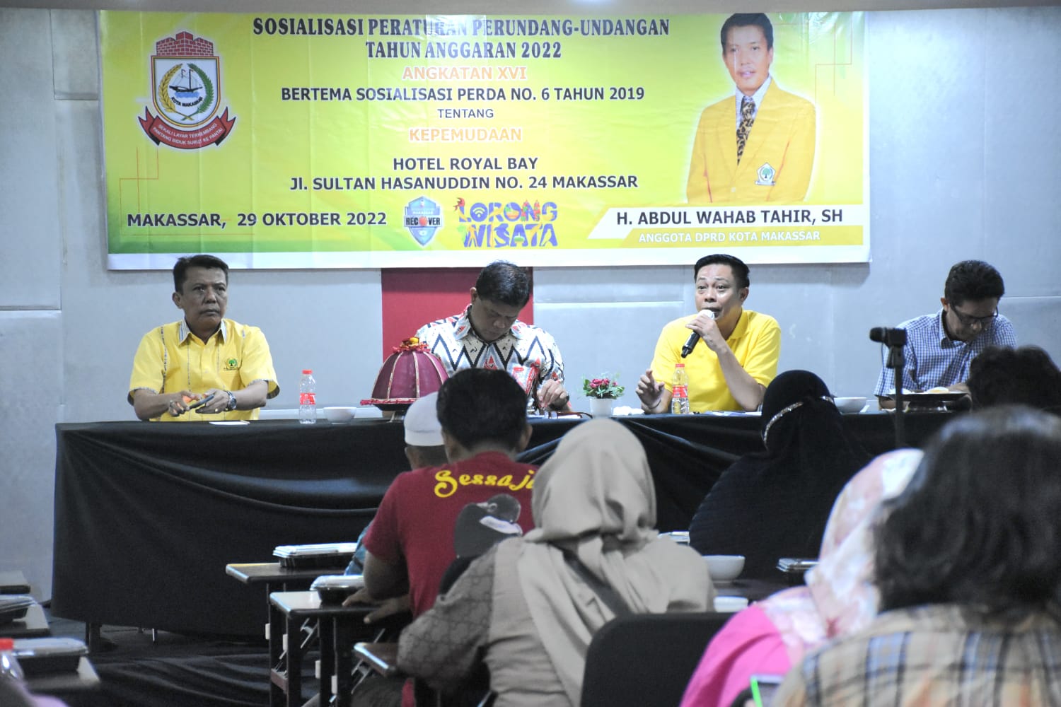 “Dalam konteks islam pemuda adalah harapan,” kata Wahab Tahir saat menggelar sosialisasi Perda nomor 6 tahun 2019 tentang Kepemudaan, di Hotel Royal Bay, Jalan Sultan Hasanuddin Makassar, Sabtu (29/10/2022).