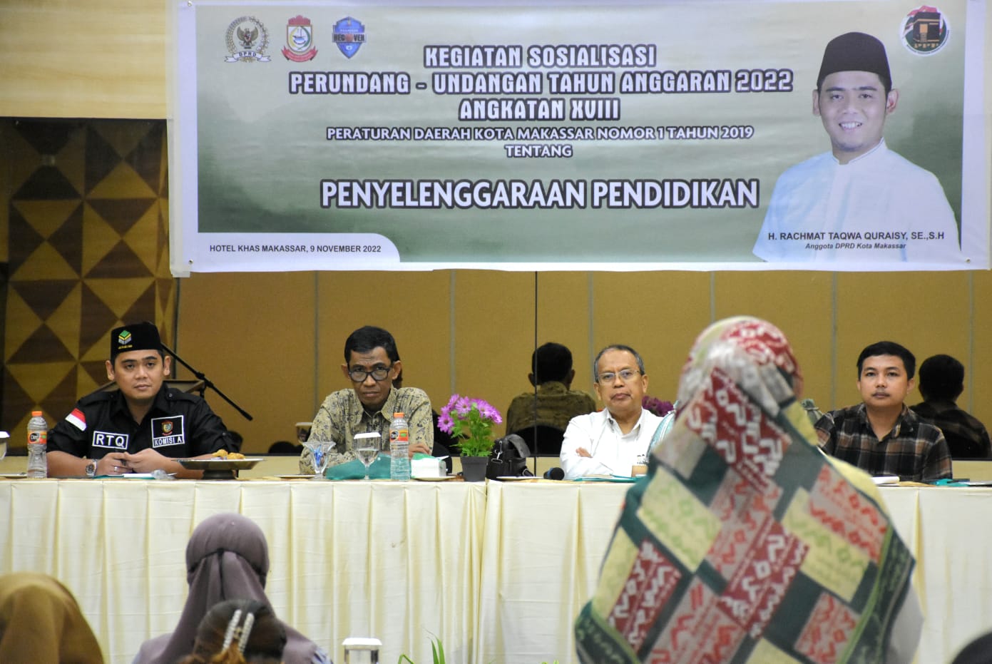 MAKASSAR, DATAKITA.CO – Anggota DPRD Kota Makassar, Rachmat Taqwa Quraisy (RTQ) menekankan kepada orangtua agar terus memperhatikan pendidikan anaknya. Terkhusus asupan didikan dari mereka di dalam keluarga.