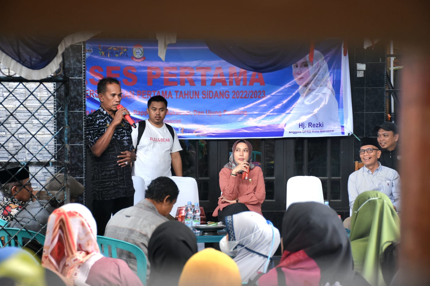 Anggota DPRD Makassar dari Fraksi Demokrat, Rezki mengawali resesnya di Jl Rappocini Raya, Lr 9, RT 01 RW 07, Kelurahan Buakana, Kecamatan Rappocini, Makassar, Kamis (1/12/2022).