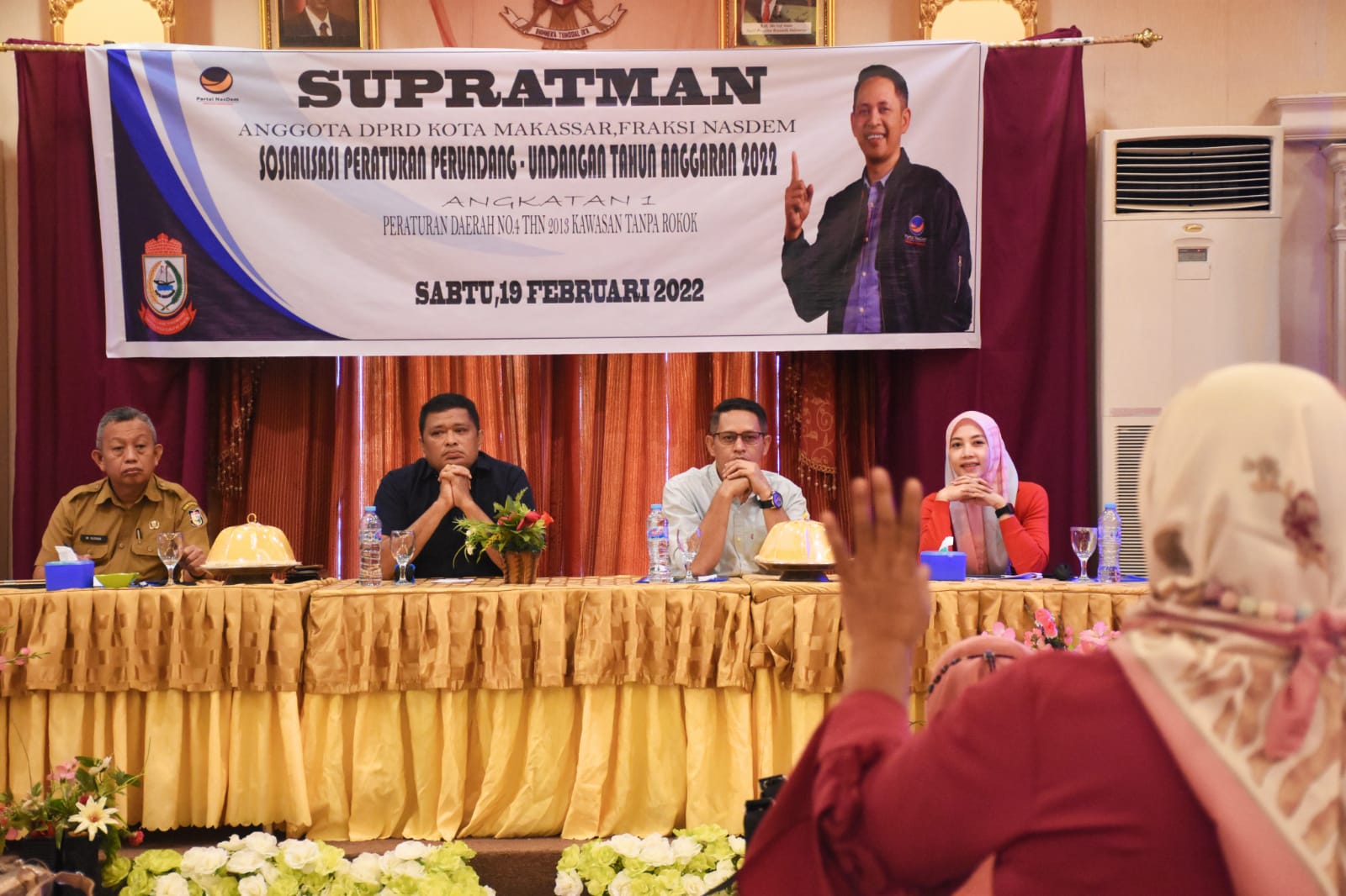 MAKASSAR, DATAKITA.CO – Anggota DPRD Kota Makassar, Supratman menggelar sosialisasi peraturan daerah (Perda) nomor 4 tahun 2013 tentang Kawasan Tanpa Rokok (KTR), di Hotel Grand Town, Sabtu (19/2/2022).